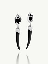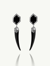 Alexandria Horn Talisman Drop Earrings With Black Onyx Agate In 18K White Gold