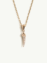 The Damian Horn Talisman Pendant Necklace by Angie Marei is luxuriously handcrafted from 18-karat yellow gold and French pavé set brilliant-cut white diamonds. The powerful sculptural design was inspired by amulets and talismans worn by the ancient Egyptians. This adjustable chain can also be worn as a choker.