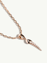 The Damian Horn Talisman Pendant Necklace by Angie Marei is luxuriously handcrafted from 18-karat rose gold and French pavé set brilliant-cut white diamonds. The powerful sculptural design was inspired by amulets and talismans worn by the ancient Egyptians. This adjustable chain can also be worn as a choker.