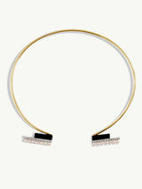 The Invidia Black Onyx Column & Pavé-Set Brilliant-Cut White Diamond Collar Necklace With Pearls by Angie Marei is exquisitely hand-crafted in 18-karat yellow gold and features black onyx stones, pavé-set brilliant-cut round diamonds, and white pearls. This elegant piece combines the opulence and glamour of the Art Deco era with the marvelous jewels of the Ancient Egyptian royals.