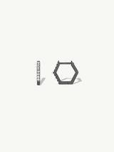 Inspired by the sacred symbol of harmony and balance, the Hexagon Hinged Hoop Earrings by Angie Marei are handcrafted from luxuriously blackened 14-karat white gold and feature sparkling brilliant round-cut white diamonds. These geometric earrings are versatile and compliment any look from day to night.
