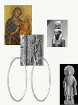 Auras are a universal symbol of divinity, is depicted in artworks from many cultures from East to West as a circular golden disc emanating a glowing light around the heads of divine holy figures and deities. In ancient Egypt, the sun deity Ra was often shown with a circular disc representing the sun's radiance, and in ancient Greece, there are pictorial representations of rayed crowns of light surrounding the heads of mythological heroes suggesting their unique divine powers.