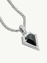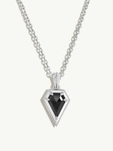 Aphrodite, the goddess of love and beauty, inspired this stunning amulet pendant necklace. The black diamond, a symbol of power and authority, is elegantly set in a solid 18-karat white gold bezel setting. The length of the chain can be adjusted to be worn as a choker. This luxurious and eye-catching necklace is the perfect accessory that adds a touch of mystery and glamour to any look day or night.