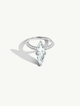 The Marei Diamond Halo Engagement Ring by jewelry designer Angie Marei, showcases a stunning brilliant-cut Marquise White Aquamarine jewel enthroned in an Art-Deco-inspired claw setting. Handcrafted from 18-karat white gold and pavé-set brilliant-cut round white diamonds, this gorgeous piece will dazzle and delight the senses with its hidden halo of sparkling white diamonds creating a sparkling effect around the centerpiece gemstone.