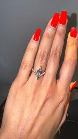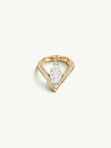 The Yasmeen Ring by Angie Marei is a breathtaking homage to the timeless elegance of the jasmine flower, masterfully fusing cultural richness with exquisite artistry. At its heart glows a stunning marquise-cut white diamond, its elongated shape reminiscent of a jasmine petal. This exceptional gem is elegantly cradled within an 18-karat yellow gold setting, adorned with shimmering white diamond accents, and finished with luminous white enamel. The design artfully mirrors the delicate embrace of flower petals, embodying the jasmine’s symbolism of purity, love, and grace.