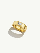 A symbol of strength and architectural precision, The Monolith Ring embodies the power of simplicity and form. Crafted in solid 18-karat gold, its bold silhouette is defined by clean, geometric lines that evoke the enduring beauty of monumental design. At its center, a striking emerald-cut diamond is set flush within the band, a refined detail that speaks to balance, structure, and quiet confidence.