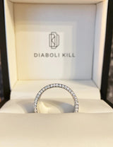 The Ignis Diamond Edge Accented Band by Angie Marei features an extra-wide 8mm band handcrafted in 18-karat rose gold and two rows pavé set brilliant-cut white diamonds along the top and bottom edges of the band. The gorgeous sparkling white diamonds create an eye-catching scintillating effect of flashing spectral-colored sparkles.