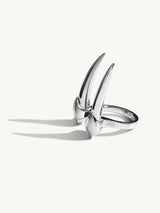 The Damian Brevis Horn Talisman Ring by Angie Marei, handcrafted in high-polished luxurious 18-karat white gold features a powerful and sensual sculptural horn design inspired by amulets and talismans worn by royal ancient Egyptians.