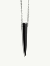 The sculptural Black Onyx Pendulum Chain Necklace by Angie Marei is artfully crafted and features a salient black onyx semi-precious stone pendant on a sterling silver diamond-cut cable chain. Each one-of-a-kind pendant is beautifully hand-carved and polished by artisans.