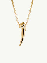 The Damian Brevis Horn Talisman Pendant Necklace by Angie Marei is luxuriously handcrafted from solid 18-karat yellow gold. The powerful sculptural design inspired by amulets and talismans worn by the ancient Egyptians.