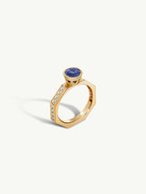 Octavian Lotus Engagement Ring With Round Brilliant-Cut Cornflower Blue Sapphire Ring In 18K Yellow Gold