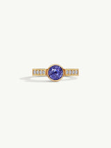 - Accent Stones: Gypsy-set brilliant-cut round natural white diamonds; Diamond Grade: DEF Color, VS+ Clarity. Approximately 0.25-carat total weight.