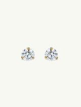 The Solitaire White Diamond Stud Earrings by Angie Marei showcase a breathtaking pair of brilliant-cut round white diamonds totaling 0.34 carats, each set in an elegant 3-prong claw setting. Meticulously hand-selected for their perfect harmony in beauty, size, color, and clarity, these fine diamonds are matched to create an impeccable, luminous pair.