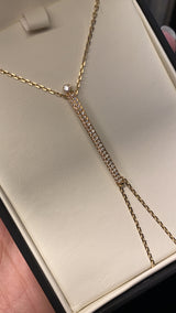 The Aracelis Diamond Body Chain Necklace by Angie Marei is a sensual fusion of minimalist design and wearable sculpture. Sparkling brilliant-cut round white diamonds are pavé-set on a sleek 18-karat white gold pendant, suspended from a solid gold chain that gracefully wraps around the body. Effortlessly striking, this radiant piece is perfect styled with a bikini or a plunging neckline—for a look that exudes elegance and allure.