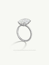 As its name suggests, Suma, the Arabic word for "moonlight" and "beauty," the fiercely feminine Suma Engagement Ring by designer Angie Marei is the ultimate embodiment of striking beauty featuring an exquisite brilliant cut Oval-Shaped white diamond mounted in a classic four-claw-prong 18-karat white gold and pavé diamond setting. Glittering white diamond accents are skillfully handset adorning each prong and band. And a single sparkling white diamond is secretly set beneath the center stone touching the wearer's skin. A romantic element of surprise and symbol of love.