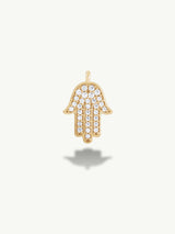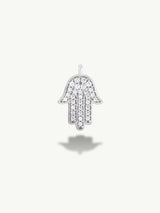 A timeless symbol of divine protection and strength, the Hamsa Talisman Charm Pendant With Pavé-Set Brilliant White Diamonds radiates spiritual power and grace. Revered across cultures, the open palm—anchored by a brilliant white diamond—serves as a talisman of blessing, resilience, and sacred guardianship.