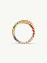 Sahara Oasis Ring With Pavé-Set Brilliant-Cut Diamonds and Rainbow Ombré Sapphires In 18K Yellow Gold, 8mm