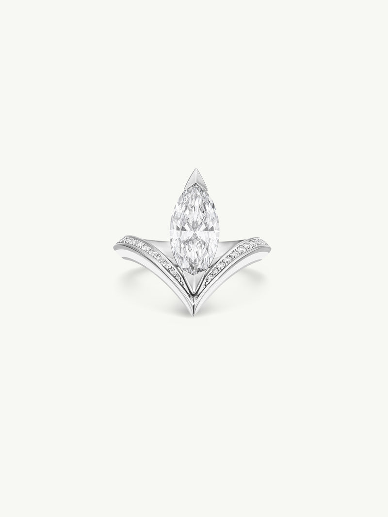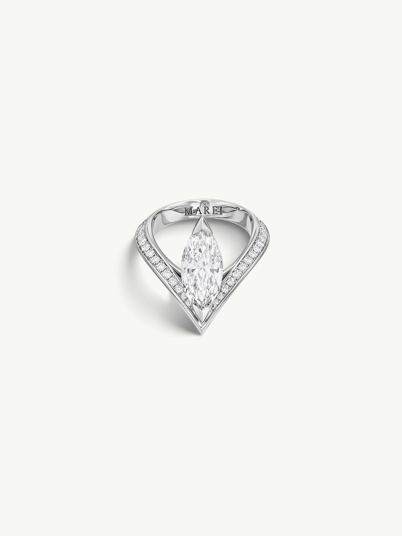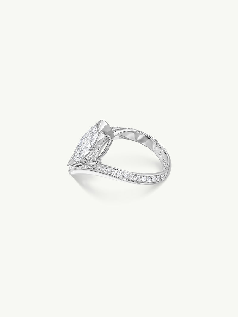 Yasmeen Ring with Brilliant Marquise-Cut White Diamond In 18-Karat White Gold With Enamel
