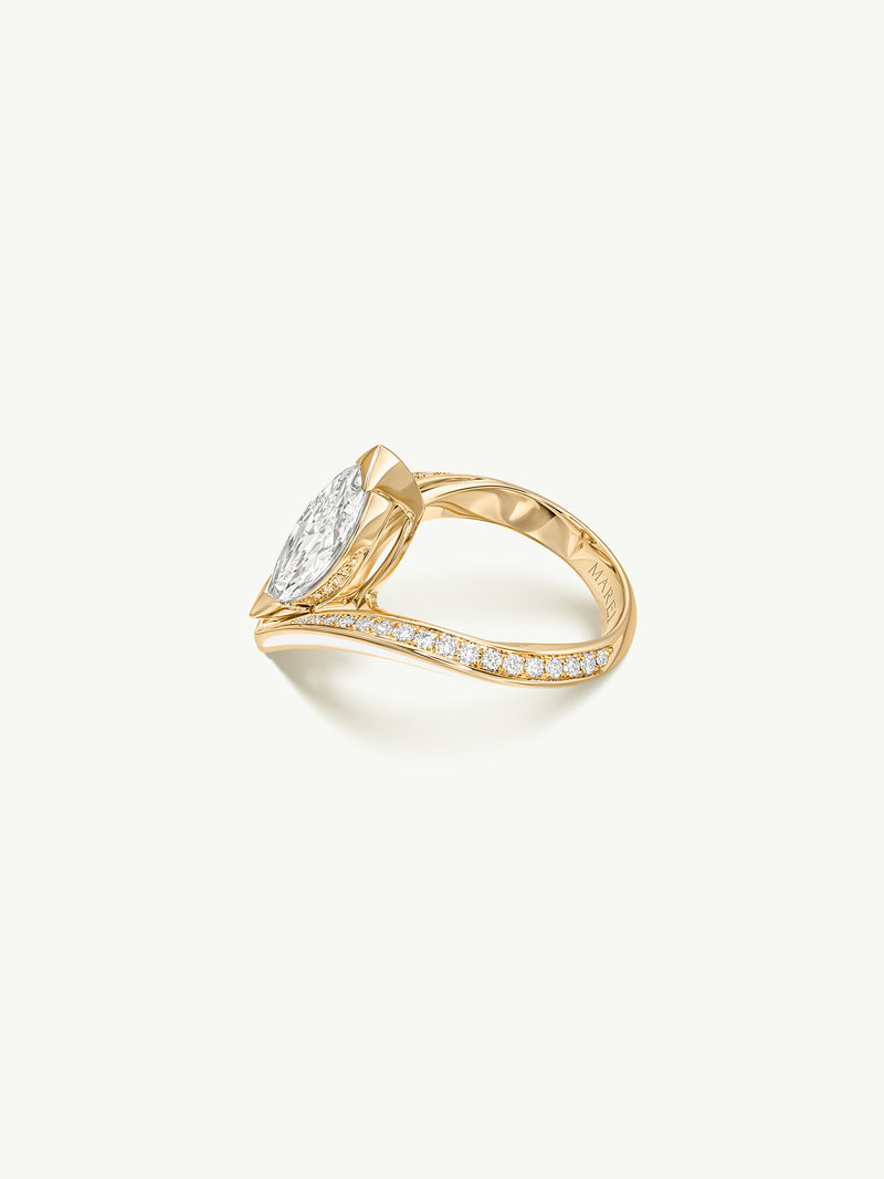 Yasmeen Ring with Brilliant Marquise-Cut White Diamond In 18-Karat Yellow Gold With Enamel