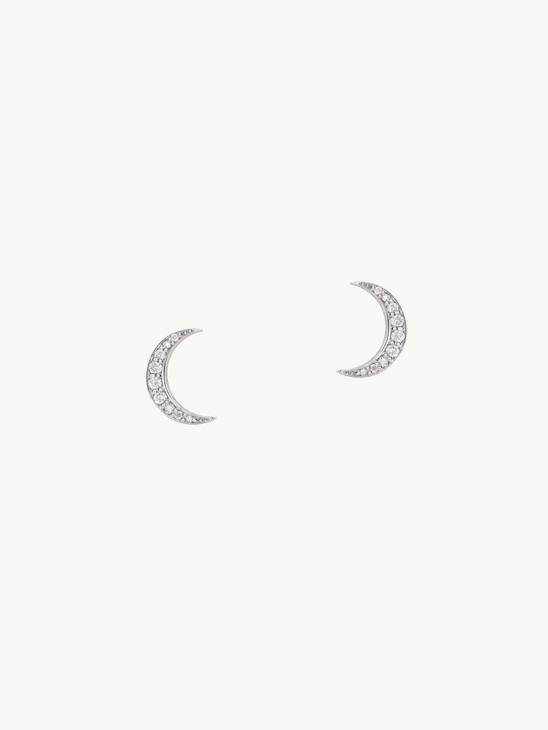 Celestial Moonbeam Stud Earrings With Pavé-Set White Diamonds, 0.10 CTW