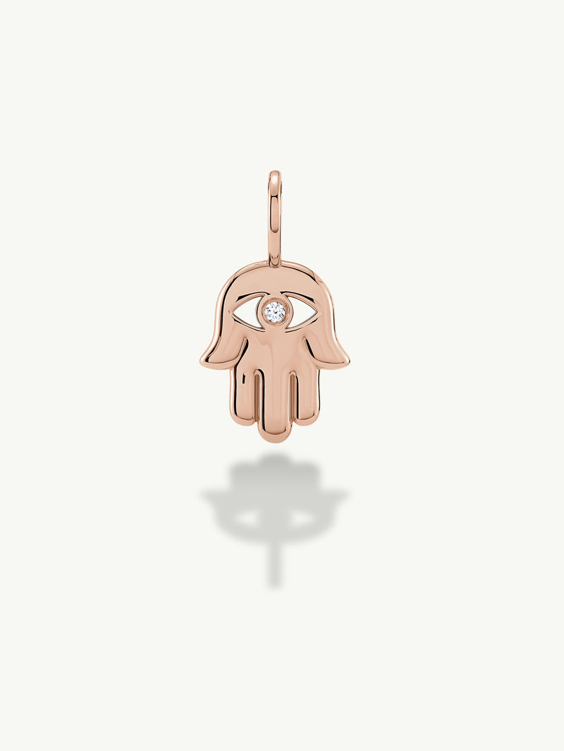 A timeless symbol of divine protection and strength, the Hamsa Talisman Charm Pendant radiates spiritual power and grace. Revered across cultures, the open palm—anchored by a brilliant white diamond—serves as a talisman of blessing, resilience, and sacred guardianship.
