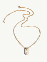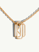 Diaboli Kill Monogram Tag Pendant by Angie Marei crafted in polished solid 18-karat yellow gold metal. Pair this unique pendant with one of our diamond-cut cable chains.