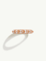 The Palmyra Eternity Band, created by Angie Marei, is an exquisite piece of jewelry made from 18-karat rose gold and studded with sparkling brilliant-cut white diamonds. The inspiration for the design comes from Ancient Egyptian architecture and desert palm trees, which are reflected in the textures and negative spaces of the intricate details. The elaborate design is sure to become an heirloom piece that generations of admirers will cherish. The ring can be worn as a wedding band or as a statement piece.