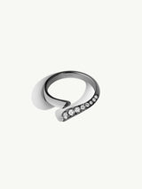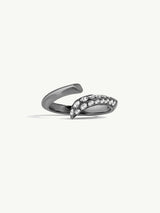 The Pythia Serpentine Twist Pavé White Diamond Wedding Ring by designer Angie Marei features two rows of sparkling brilliant-cut round white diamonds set in blackened 18-karat gold.