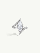 The Ayla Arabesque Engagement Ring by Angie Marei is a timeless piece that is sure to enchant with its captivating ultra-feminine design that exudes sophistication. This unique piece features a brilliant-cut marquise white diamond center stone embellished with pave-set glittering white diamonds and crafted from 18-karat white gold. A perfect symbol of your eternal love.