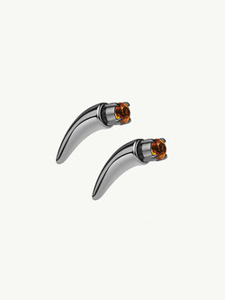 The Damian Citrine Horn Earrings by designer Angie Marei is luxuriously handcrafted in blackened 18-karat gold features a powerful yet sensual sculptural horn design inspired by amulets and talismans worn by the ancient Egyptians.