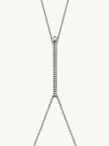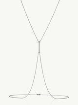 The Aracelis Diamond Body Chain Necklace by Angie Marei is a sensual fusion of minimalist design and wearable sculpture. Sparkling brilliant-cut round white diamonds are pavé-set on a sleek 18-karat blackened gold pendant, suspended from a solid gold chain that gracefully wraps around the body. Effortlessly striking, this radiant piece is perfect styled with a bikini or a plunging neckline—for a look that exudes elegance and allure.