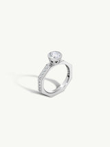 Octavian Lotus Engagement Ring With Round Brilliant-Cut White Diamond In 18K White Gold