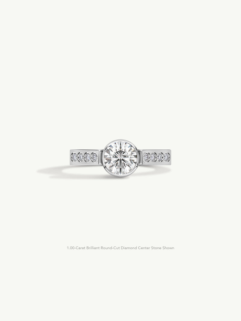 • Shown with a 1.00-Carat brilliant-cut round white diamond center stone