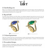 Each gemstone is one-of-a-kind and unique in its size and shape; therefore, it would require a custom-tailored fit for our signature settings. Once the gems are carefully selected, our ring settings are then specially designed and handcrafted for the particular gemstones and our client's unique size measurements. Additionally, some pieces may require rare gemstone sourcing and specialized lapidary stone cutting services.