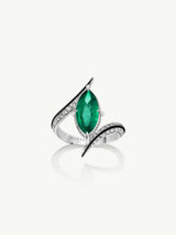 Ayla Arabesque Brilliant Marquise-Cut Emerald Ring With Pavé White Diamonds & Enamel In 18K White Gold