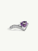 Designed to mirror a water droplet delicately held in suspension, this particular Dorian Floating Engagement Ring by Angie Marei features a one-of-a-kind, rare, purple Spinel gemstone. This Spinel gem was carefully sourced for its beautiful color-changing hues from purple to pink and blue and has been specially cut into this unique brilliant-cut shield shape. The setting is skillfully handcrafted from 18-karat white gold and sparkling brilliant-cut pavé white diamonds. Visualize the soft waves of the ocean as they bind together with the strength of the human spirit.