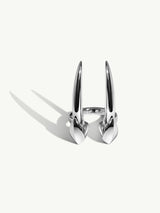 The Damian Brevis Horn Talisman Ring by Angie Marei, handcrafted in high-polished luxurious 18-karat white gold features a powerful and sensual sculptural horn design inspired by amulets and talismans worn by royal ancient Egyptians.