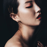 The Damian Horn Talisman Dagger Earrings by Angie Marei feature a powerful, sensual, and sculptural horn motif design inspired by amulets and talismans worn by the ancient Egyptians. Luxuriously handcrafted in luxurious solid sterling silver.