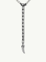 The Akoya pearls on this necklace have a luminous white color with slightly warm overtones that are hand-strung on black silk thread and measure 5mm in diameter. The bold and edgy 4" inch chain extender is designed to be styled in two different ways. The brilliant diamond-encrusted horn talisman pendant can be worn in front or down the back. This luxurious necklace will become a cherished part of your jewelry collection.