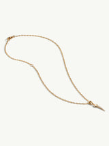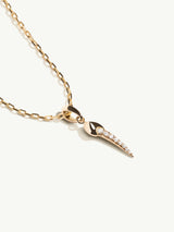 The Damian Horn Talisman Pendant Necklace by Angie Marei is luxuriously handcrafted from 18-karat yellow gold and French pavé set brilliant-cut white diamonds. The powerful sculptural design was inspired by amulets and talismans worn by the ancient Egyptians. This adjustable chain can also be worn as a choker.