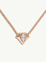 The Alexandria Pendant Necklace is handcrafted of gold and features an elegant brilliant-cut marquise white diamond at its center. Inspired by ancient Egypt, this piece also has inspiration from the Step Pyramid of Djoser, which symbolizes a stairway to heaven and represents our personal journey in life. The pendant is a beautiful reminder that we are all connected to the universe and each other.