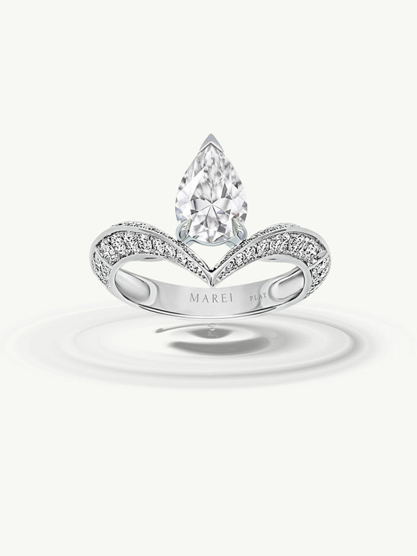 Designed to mirror a water droplet delicately held in suspension. The Dorian Floating Teardrop Collection by Angie Marei features a brilliant-cut pear-shaped diamond, sapphires, and emeralds mounted in pavé-set white diamond settings. Visualize the soft waves of the ocean as they bind together with the power of the human spirit.