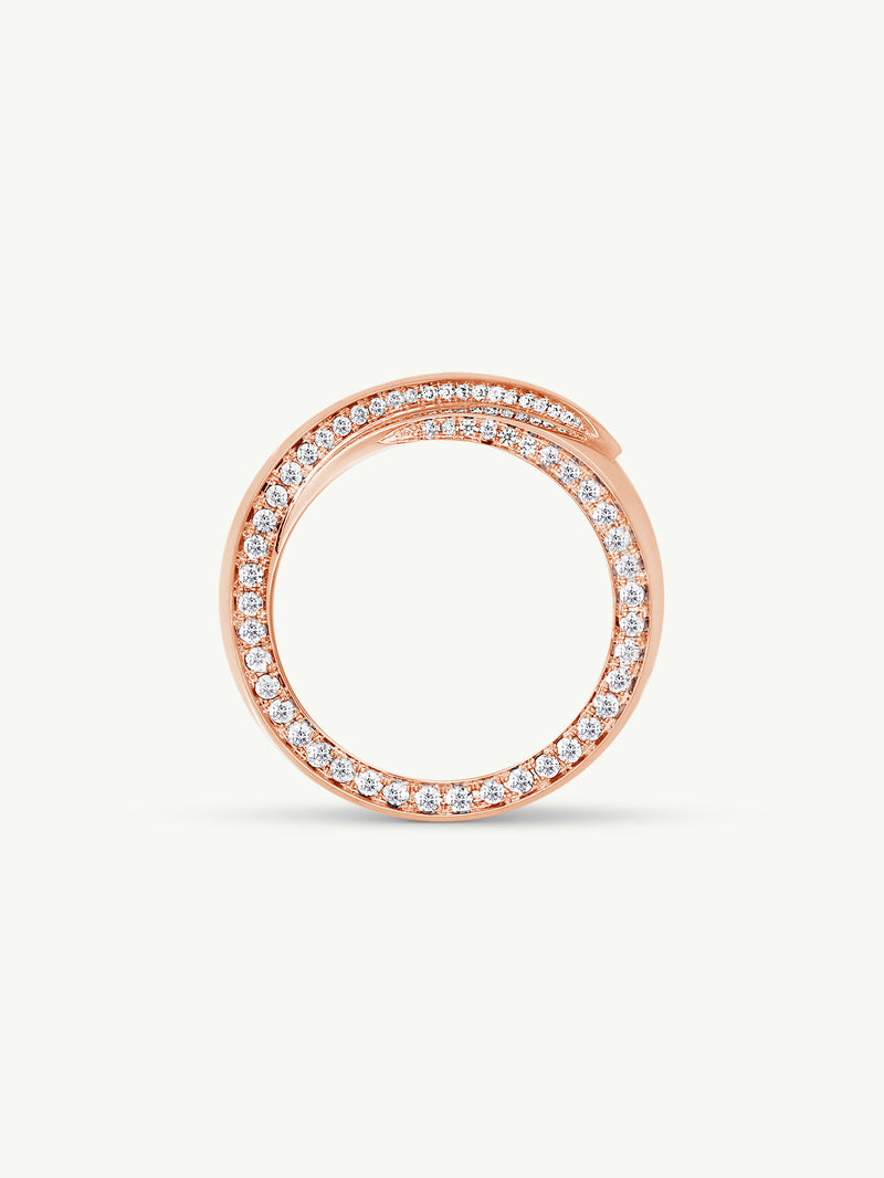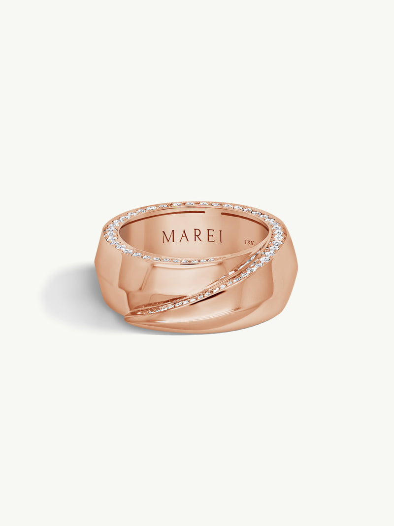 Inspired by the mesmerizing sand dunes of Africa’s most iconic desert landscapes, the Sahara Oasis Ring by Angie Marei is a masterful blend of artistry and luxury. Exquisitely handcrafted in radiant 18-karat rose gold, the design features a glistening raised peak that winds gracefully around the ring, its edges adorned with brilliant white diamonds that shimmer like sunlight on shifting sands.