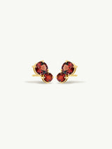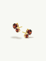The Isadora Two-Stone Stud Earrings by Angie Marei feature gorgeous brilliant-cut red garnets in luxurious 18-karat yellow gold claw settings. These earrings are named after the ancient Egyptian goddess Isis, who was known for her strength, beauty, and wisdom.
