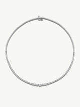 The Eternal by Marei Graduated Diamond Necklace by Angie Marei showcases a mesmerizing 6.625-carat brilliant-cut round white diamond, elegantly cradled in a classic four-prong setting on a 16-inch chain. Each diamond is meticulously hand-selected for its exceptional fire, brilliance, and clarity, ensuring a breathtaking display of light with every movement. A masterpiece of sophistication and timeless elegance, this necklace is a modern heirloom, destined to be treasured for generations.