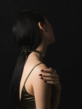 Gold vermeil is created using a thick layer of genuine gold plated over sterling silver, while black rhodium plating gives jewelry its striking dark, mirror-like sheen. Both finishes are achieved through a meticulous electroplating process that requires skill and precision to ensure an even, luminous coating.