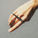 The Lilith Crossover Bar Ring by Angie Marei embodies modern elegance with a sleek, architectural silhouette inspired by minimalist design. Two polished sterling silver bars intersect gracefully, creating a dynamic tension between structure and fluidity. Handcrafted in solid sterling silver, the ring’s beveled edges capture and reflect light from every angle—revealing a luminous interplay of shadow and shine. A bold statement of refined simplicity, this piece is both contemporary sculpture and wearable art.