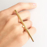 The Lilith Brilliant-Cut White Diamond Bar Ring by jewelry designer Angie Marei is handcrafted in luxurious blackened 18-karat white gold. This ring features a sleek knife-edge surface and a sparkling brilliant-cut round white diamond capturing and reflecting light from all angles. A must-have piece for Fearless Femme Fatales to flaunt all day... into the night.