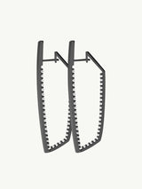 Anything but innocent, our Lilith White Diamond Studded Hoop Earrings by designer Angie Marei offer a bold and fierce reinterpretation of the classic hoop. Meticulously handcrafted in blackened 18-karat gold and polished to a mirror-like finish, these earrings feature a dazzling row of graduated spiked brilliant white diamonds set along the inside, while a sleek knife-edge exterior captures and reflects light from every angle. These stunning earrings are a must-have for Fearless Femme Fatales who dare to make a statement from dawn till dusk.