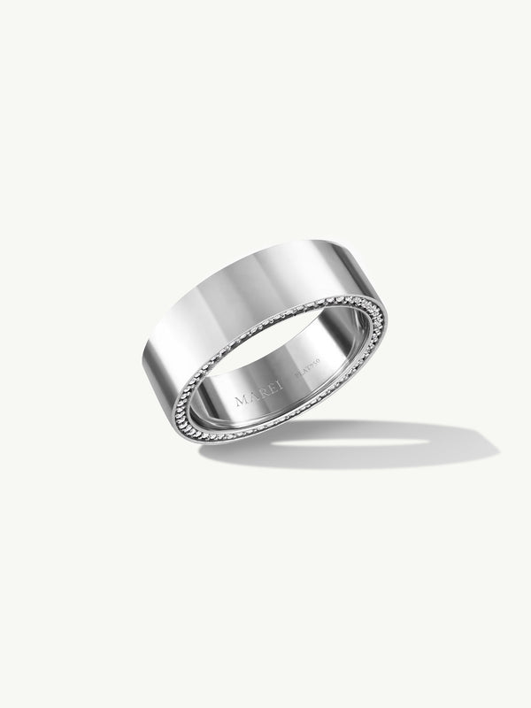 The sleek and slim Eterno 4mm Knife Edge Wedding Ring by Angie Marei is handcrafted in platinum precious metal. A sparkling single white diamond is secretly set inside the band, touching the skin, offering a romantic element of surprise and a symbol of love. This ring is perfectly designed to provide a classic and refined masculine look with a comfortable fit.
